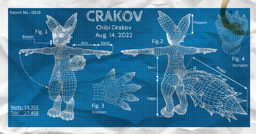 To be honest, I don’t have much of an idea myself! They’re kind of an odd mix between a Dragon, a Canine, a Kangaroo, and a bit of a Bat thrown in too for good measure! The Crakov is a more “chibi” version of the original Drakov, smaller in scale, and cuter to boot!